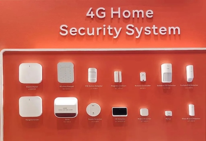 At booth SA-L41, the scene displayed 4G home security system, smart home sensor system, professional security alarm system, perimeter intrusion alarm system, access control system and other five systems.