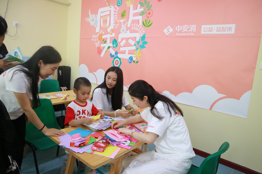 Volunteers from China Security & Fire’s Love & Care Team make handicrafts with children