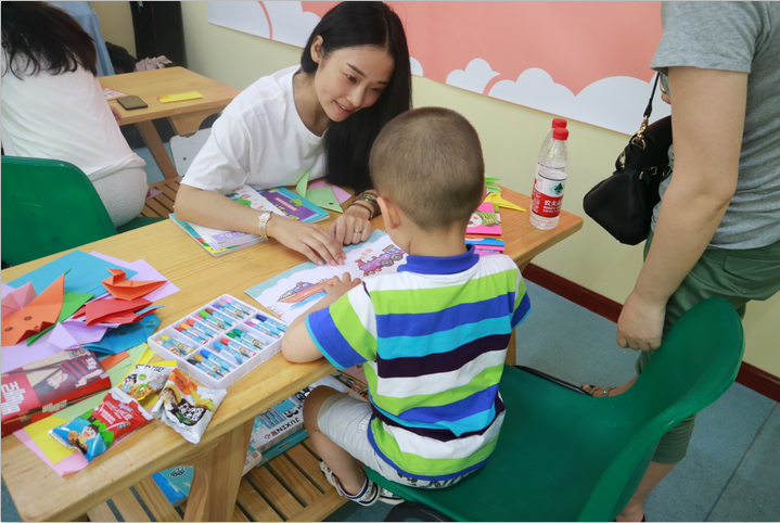 Although the children had never seen these volunteers before, they did not show any resistance to them and gradually focused on making handicrafts under their patient guidance. In the short span of time, some children had even become close to the volunteers and gave them a surprising hug when they said goodbye.
