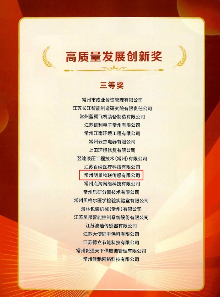 Changzhou Ming Vision Union Sensor Co., Ltd., a subsidiary of China Anke, was on the list and won the honorary title of "2023 High Quality Development Innovation Award".