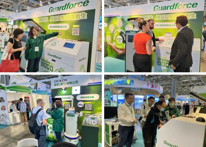 Recently, the 2023 Macao International Environmental Protection Cooperation and Development Forum and Exhibition (2023 MIECF) was successfully concluded. Macau Wei'an (Guardforce), a subsidiary of China Anke, communicated with many international environmental elites and introduced several intelligent sanitation schemes to the public, including intelligent dustbin, intelligent kitchen waste recycling box, automatic classification recycling box, UVC LED disinfection lights, intelligent disinfection robot, intelligent air disinfection machine and intelligent sanitation monitoring system.