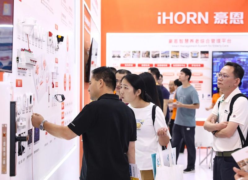 現場,居家適老化改造系統展區展示了紅外探測器、拉繩緊急按鈕、煙霧報警器、燃氣報警器、智能睡眠監護帶、跌倒監測傳感器等產品,提供火災監測、燃氣泄漏告警、健康管理、跌倒檢測、異常告警等功能,實現從人工看護到云端看護的智能升級。