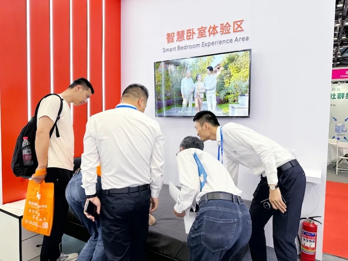 本次展會,豪恩打造了智慧臥室體驗區。來訪嘉賓不僅可以現場體驗健康監護(上臂式電子血壓計、睡眠監護等)產品,體驗到足不出戶就能進行健康監測的便利,也能在自由出入間,享受安全監護(緊急拉繩按鈕、人體跌倒探測器、人體存在探測器、煙霧報警器等)產品帶來的安全感。