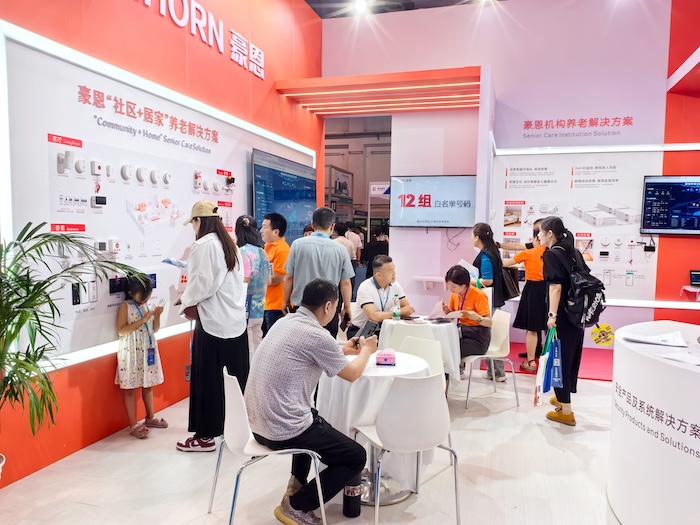 展會現(xiàn)場,豪恩全方位展示了居家安全防護(hù)系列、呼叫告警系列、定位穿戴系列、健康監(jiān)護(hù)系列在“社區(qū)+居家養(yǎng)老”、“機構(gòu)養(yǎng)老”等多領(lǐng)域的場景應(yīng)用,吸引了眾多參展商和觀眾來展位體驗參觀。
