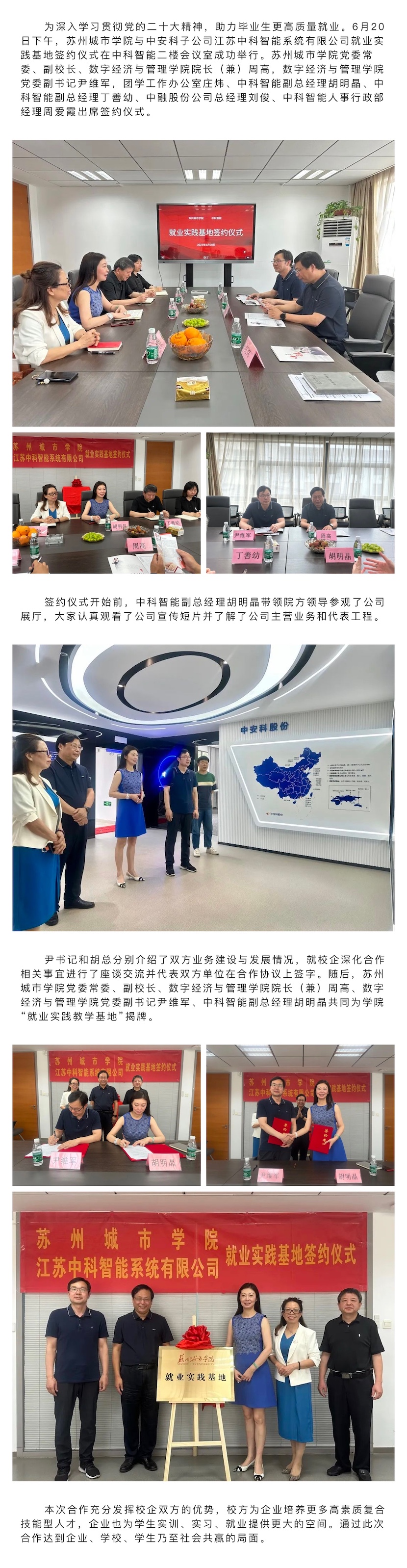 蘇州城市學院與中安科子公司江蘇中科智能系統有限公司簽約就業實踐基地