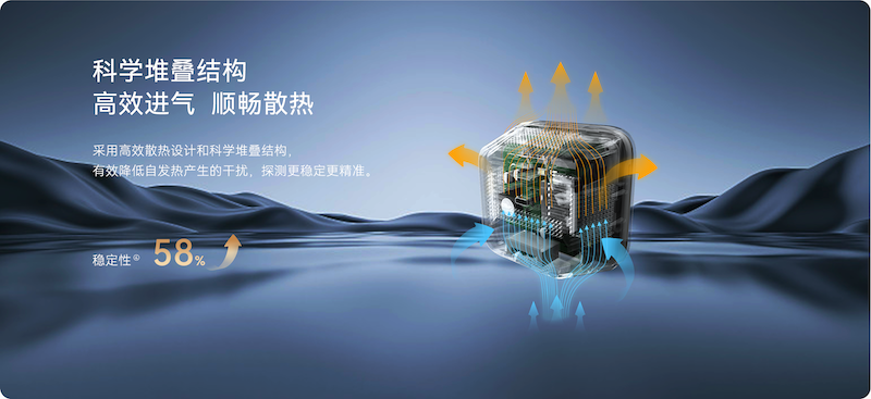 高精度檢測芯片搭載華為鴻蒙智家自適應算法,能對每一路傳感器信號做實時補償與融合處理,保障傳感器即使處于復雜環境下也能穩定探測,抗干擾能力提升17.9%*。