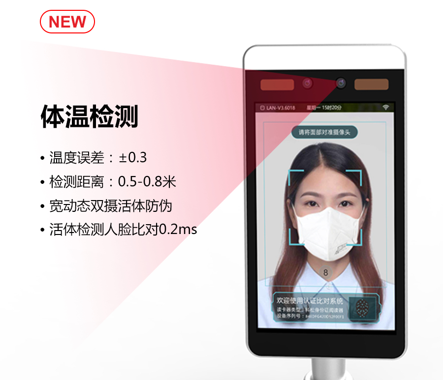 科松,集紅外非接觸式、±0.3℃高精度、高并發檢測等特點于一身,滿足全過程0接觸、遠程部署、識別口罩等,可篩查體溫并記錄人員身份信息,實現出入管理、出入留痕、考勤簽到、前臺接待、服務咨詢等功能,提升服務品質,保障場所安全。同時,可達2米的精準測溫距離,讓設備布控與環境適應性更加靈活,有效保護現場防疫工作人員,及時檢測、阻止異常人員從而達到整體防疫防控成效。
