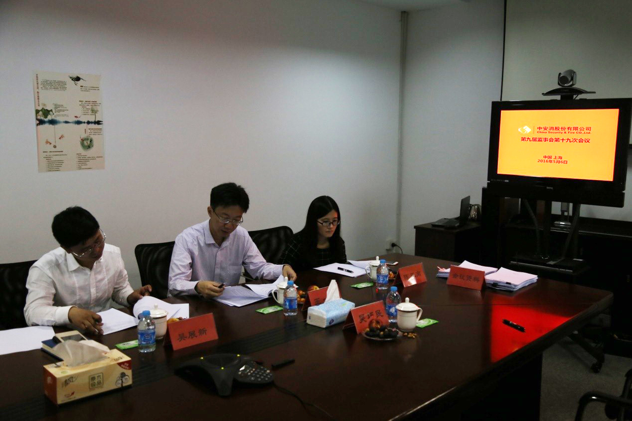 圖2,監事會會議現場,左排:監事:王一科(左二)、陳亞南(左一)、吳展新(左三)