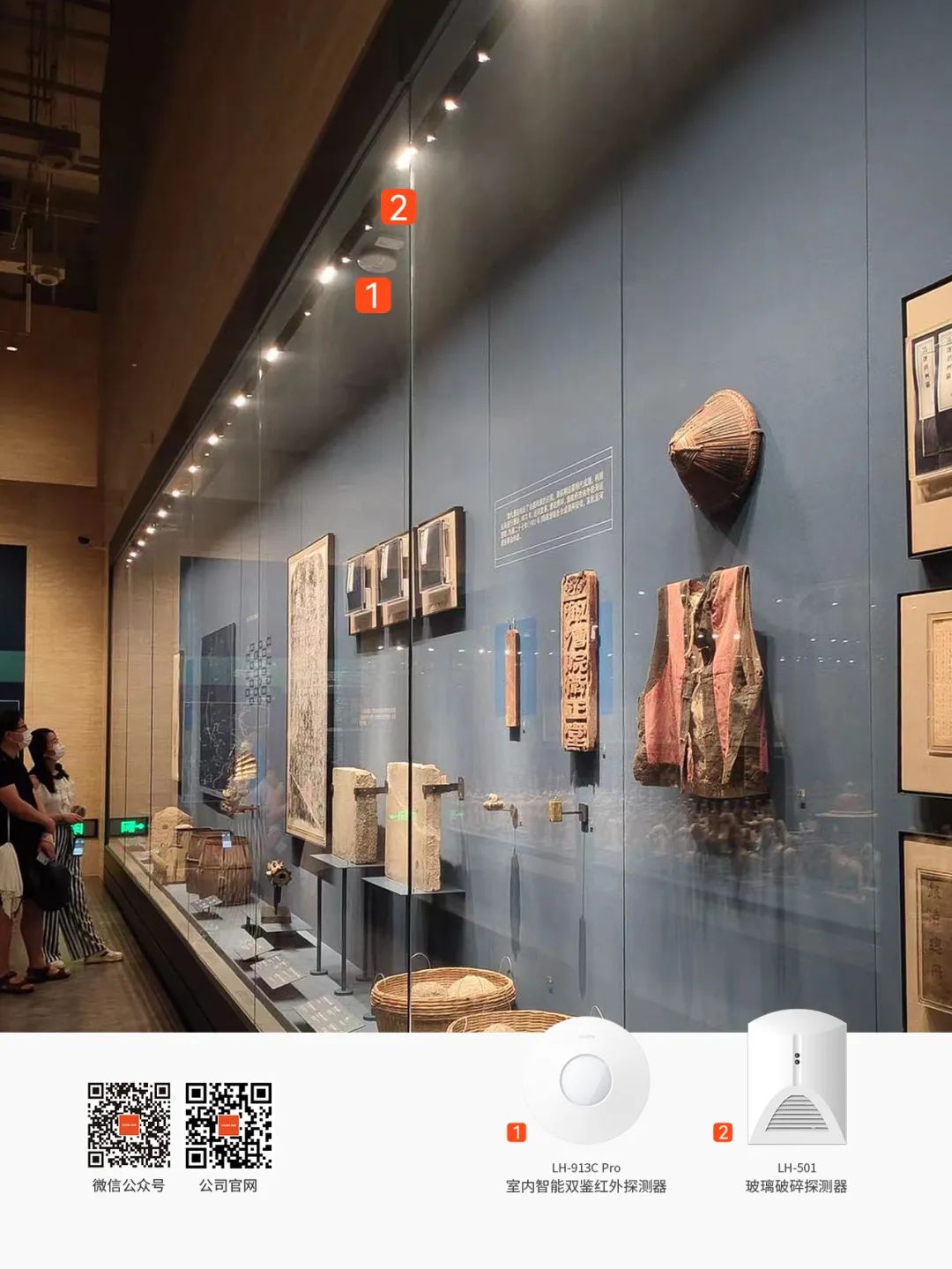 在各大展廳的門窗、出入口、外周邊通道等公共區域,安裝了多個室內幕簾和廣角被動紅外探測器,采用豪恩新一代菲涅爾透鏡與全新單片機算法,實現精準、快速探測,并且自動適應博物館遮擋、噴膠、人群往來等各種復雜環境,有效防止誤報漏報。