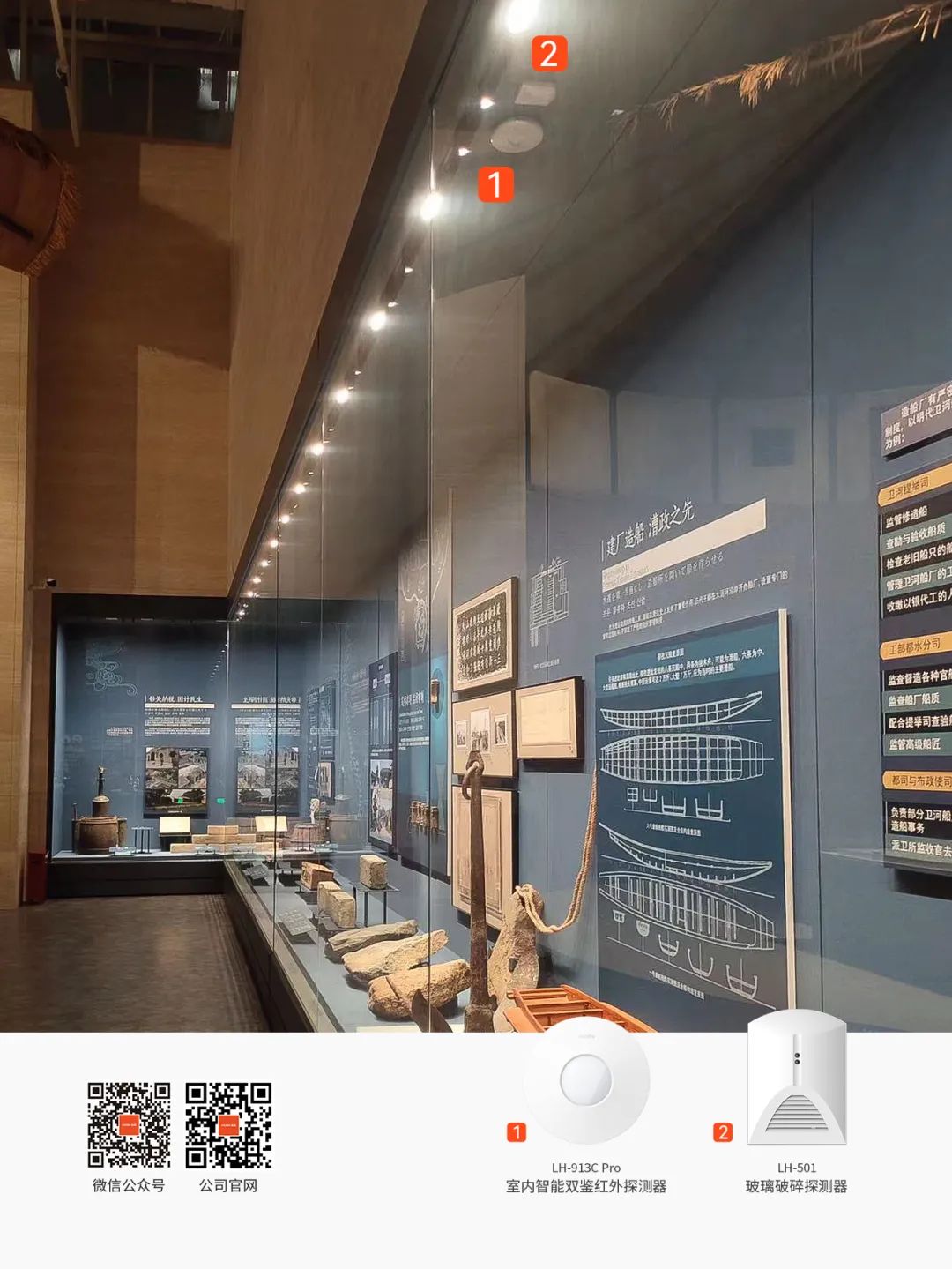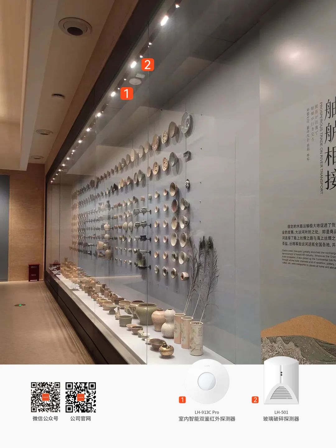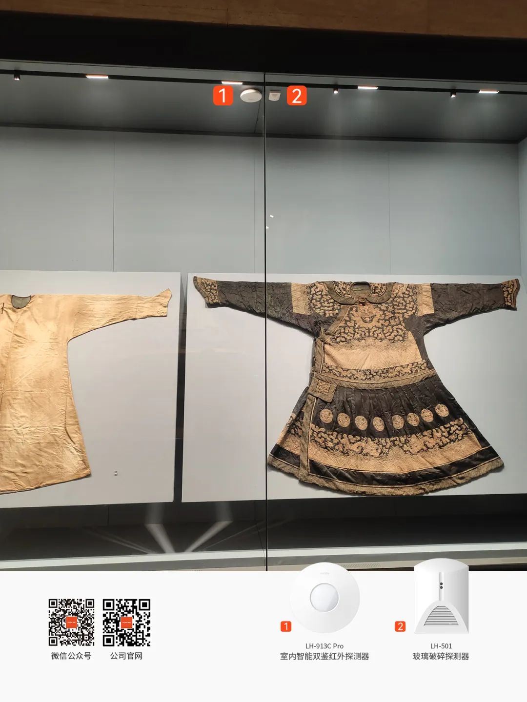 而在每個展柜內部,豪恩也安裝了玻璃破碎探測器,及時感知對展柜的惡意敲擊、爆破以及高低溫攻擊等破壞行為,為珍貴的文物筑起第二道保護墻。