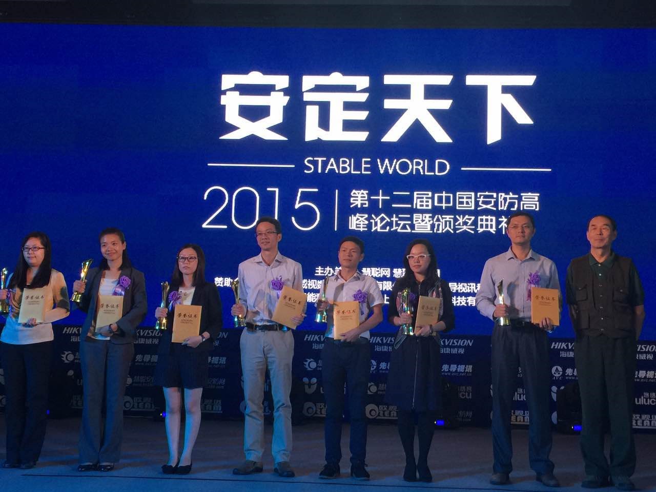 圖1 右2為中安科股份技術總監兼研發中心總經理龔灼先生代表中安消領取“2015安防十大品牌獎”