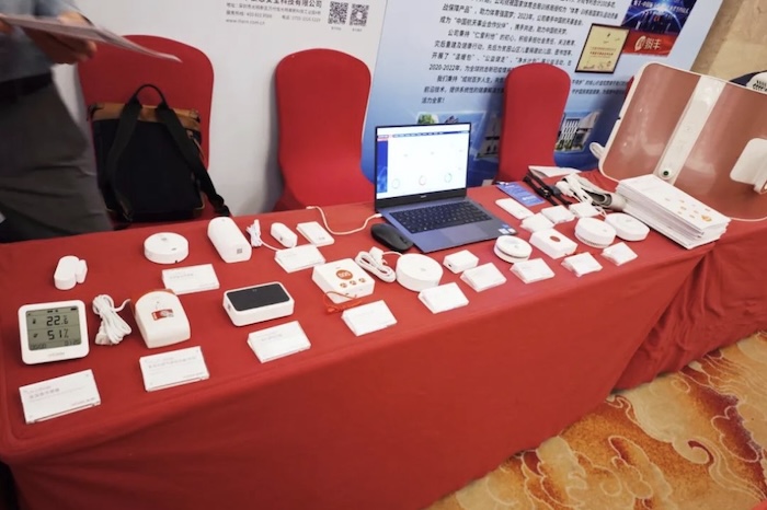 企業展示區域,中安科子公司豪恩現場展示了各類智慧養老產品,包括: