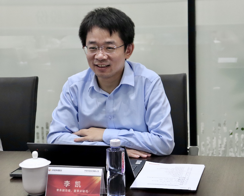 中安科常務(wù)副總裁、董事會秘書李凱對武昌區(qū)領(lǐng)導(dǎo)一行的到訪表示熱烈歡迎和感謝,并結(jié)合公司經(jīng)營情況向在場領(lǐng)導(dǎo)匯報了企業(yè)總部落戶武昌的現(xiàn)狀及發(fā)展目標(biāo),希望與武昌區(qū)一起搭建合作平臺,服務(wù)地方經(jīng)濟(jì)發(fā)展。