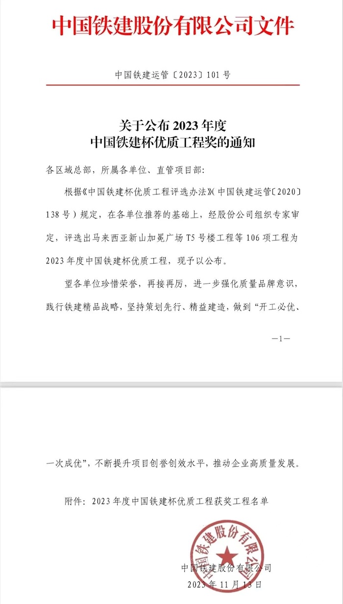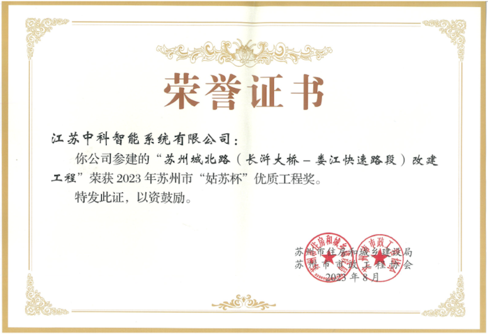 在項目建設(shè)過程中,中科智能始終堅持以“創(chuàng)建平安工地、鑄造精品工程”為目標(biāo),以質(zhì)量、安全為中心,嚴(yán)格按照施工組織方案實施,順利完成了各個系統(tǒng)的建設(shè)與交付。“市政工程最高質(zhì)量水平評價”是全國市政工程行業(yè)在工程質(zhì)量方面最高的評價獎項,代表市政工程行業(yè)同時期國內(nèi)先進水平。此次榮譽的取得,標(biāo)志著中科智能在市政工程建設(shè)領(lǐng)域又一新收獲。同時,本項目先后榮獲過“姑蘇杯”、“鐵建杯”,體現(xiàn)了中科智能在施工管理、工程質(zhì)量、科技創(chuàng)新等方面均達(dá)到了全國市政建設(shè)行業(yè)一流水平。